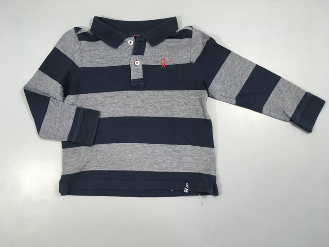Pull bleu foncé motifs hiver 15% laine, légèrement bouloché